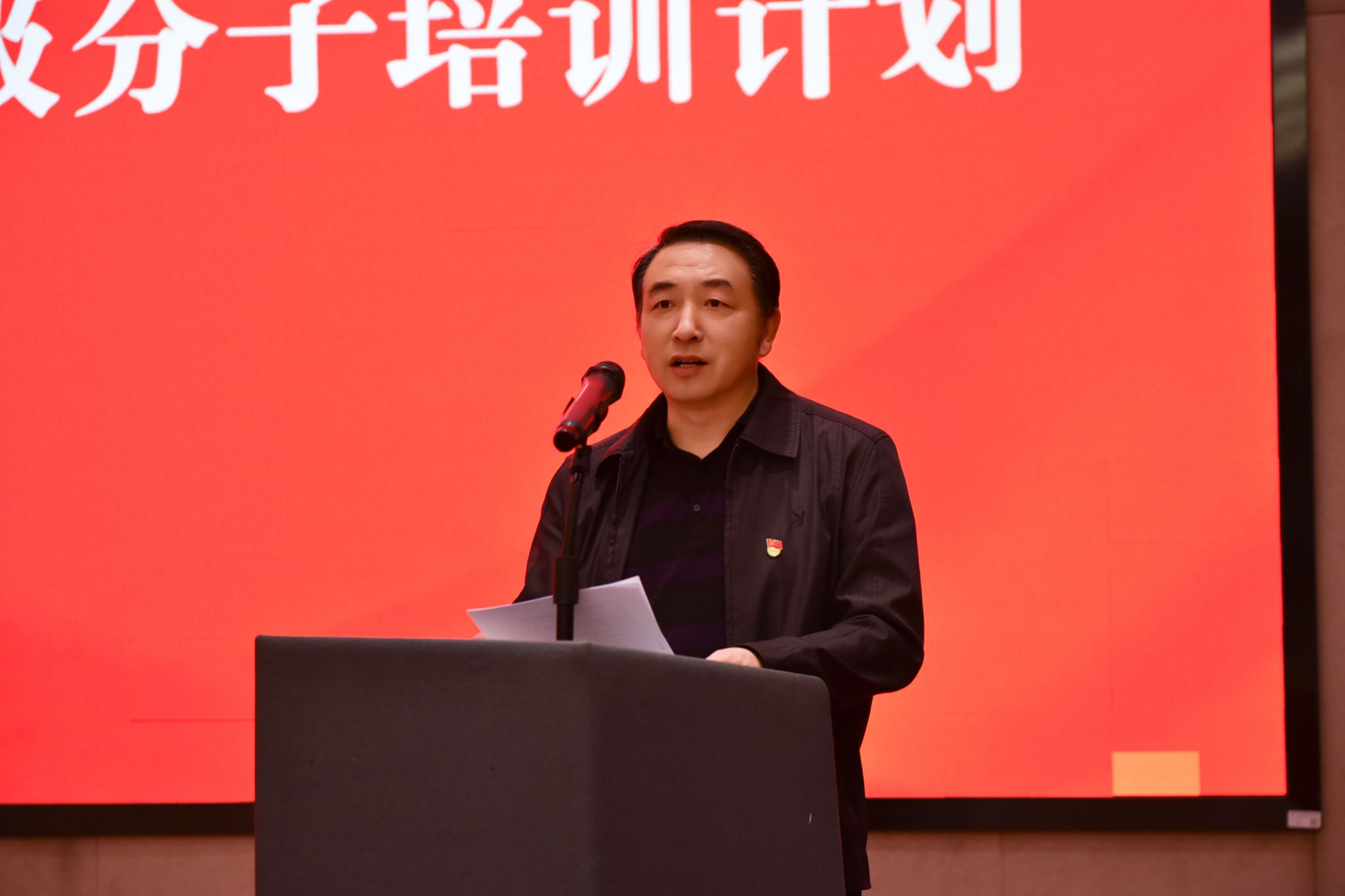 刘继兵宣读校党委关于接收预备党员文件,党委组织部副处级组织员刘萍同志领誓,新接收的预备党员在党旗下庄严宣誓,立下为共产主义事业奋斗终生的誓言。党委组织部部长、党校副校长伍建成宣读党校第44期入党积极分子培训计划。