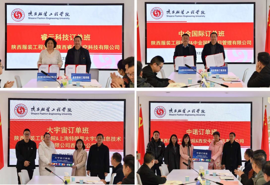 在全场嘉宾的共同见证下,学校与五家企业代表依次签订订单班合作协议,为企业授牌。
